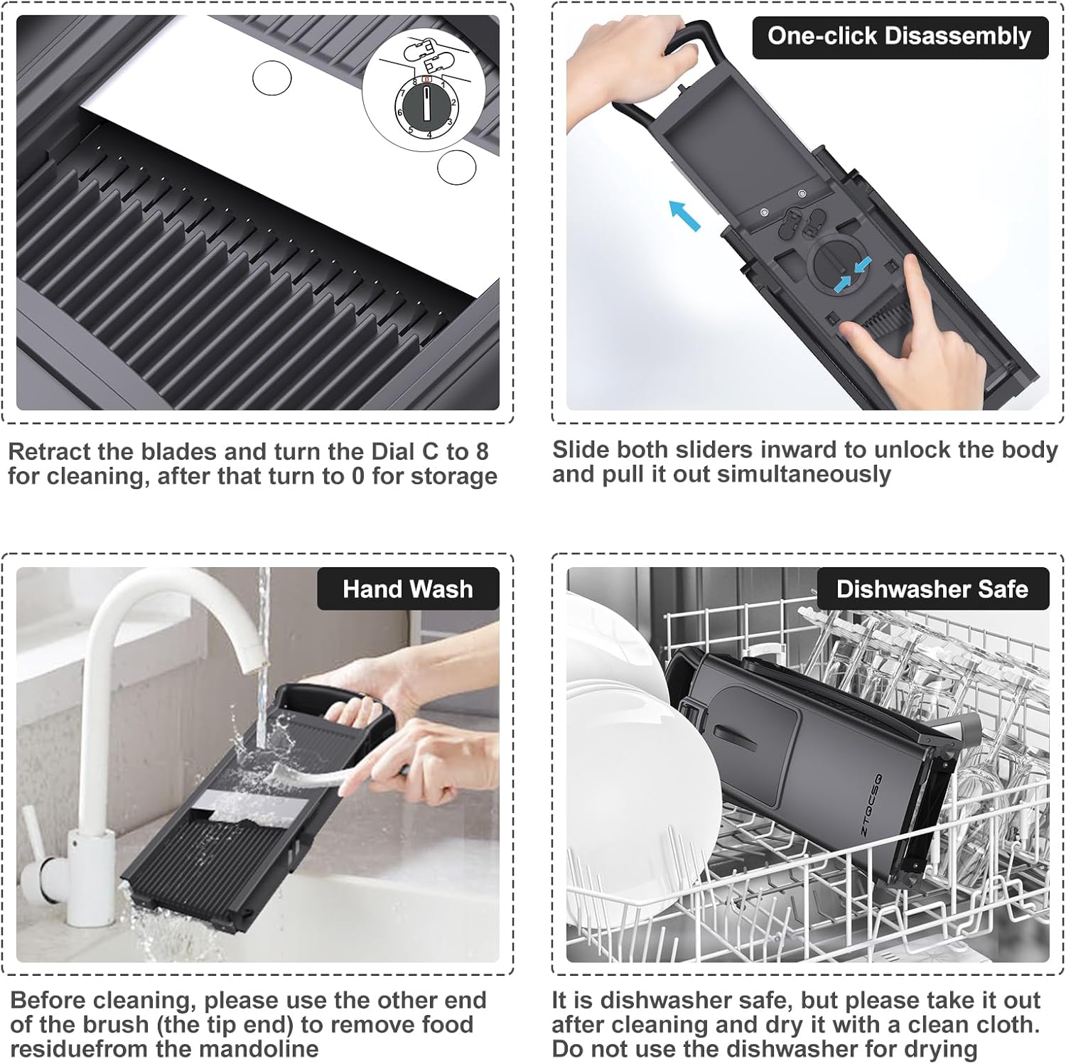 5. 【Time-Saving and Space-Saving Solution】: There is a learning curve associated with product use. You will find yourself using this product frequently once you have "mastered" its use. this slicer is a fantastic investment. The ZTQCSQ Mandoline Slicer is not only a time-saving tool but also a space-saving one. Its compact design makes storage easy, freeing up valuable counter space in your kitchen. The detachable blade plate design is a game-changer, making cleaning and maintenance a breeze.