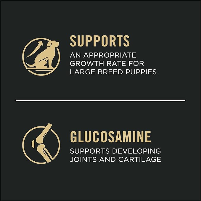Support your large breed puppy's appropriate growth when you give him Purina Pro Plan DEVELOPMENT Large Breed Beef and Rice Formula dry puppy food. Real beef is the number 1 ingredient in this high protein puppy food made with high-quality ingredients carefully selected for specific nutritional or functional purposes. Omega-6 fatty acids and vitamin A nourish your puppy's skin and coat, and glucosamine helps support his developing joints and cartilage. We also include DHA from omega-rich fish oil in our dry dog food for puppies to nourish his brain and vision development. Plus, calcium, phosphorus and other minerals help build strong bones and teeth as he grows. We fortify our dry puppy food for large breeds with guaranteed live probiotics for digestive and immune health. Purina Pro Plan DEVELOPMENT delivers 100 percent complete and balanced nutrition for puppies in a highly digestible, high-quality dog food formula for optimal nutrient delivery with no artificial colors or flavors.